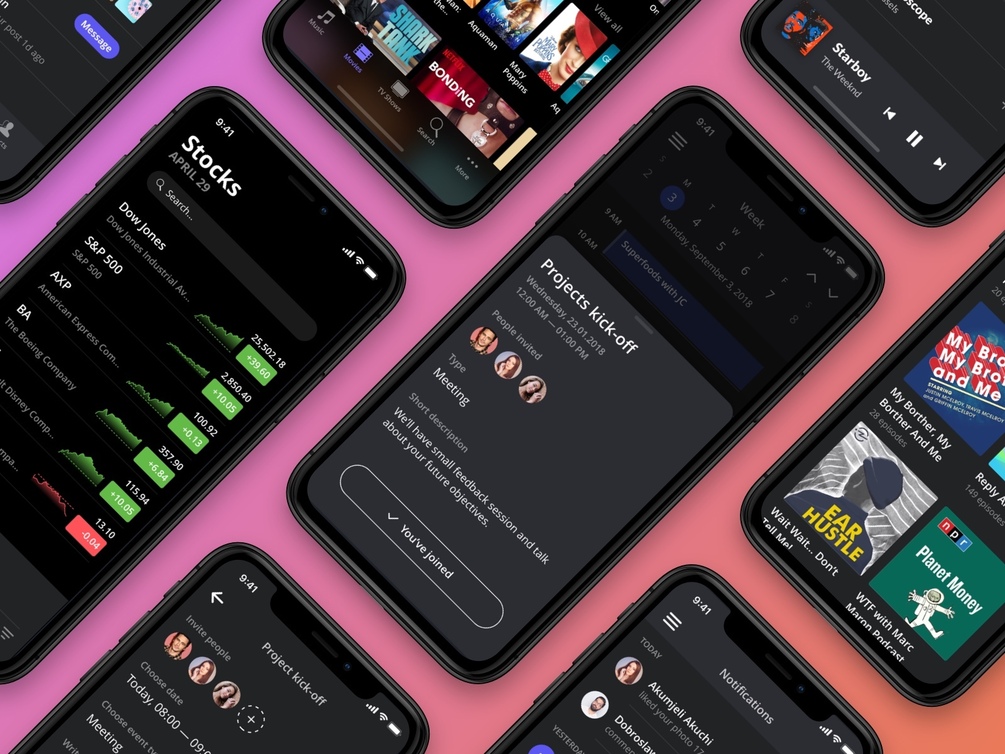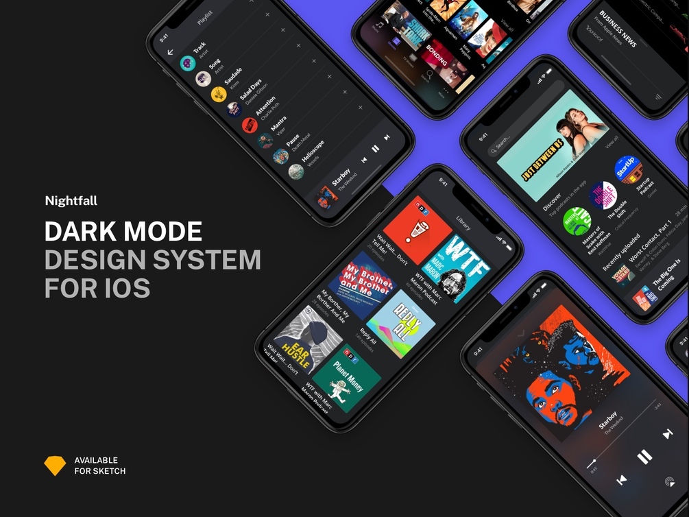 Nightfall supports latest trends in navigation and organization of mobile screens. Also, it’s based on iOS 12 guidelines and even iOS 13 rumors. So you have everything to build dark mode mobile apps already now.