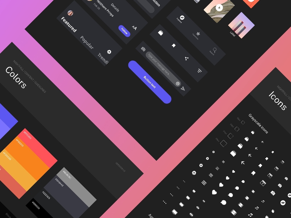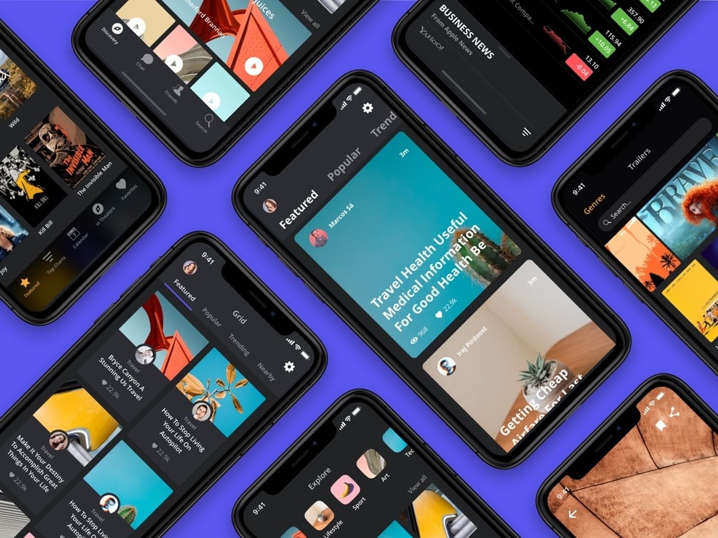 The full package consists of 50+ templates in 10 categories (content, maps, mail, calendar, messages, profile, system screen, music & podcasts, log in / sign up), 330+ components, 120+ icon pack.